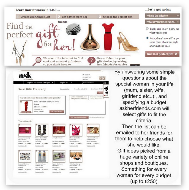 Ask Her Friends can be used in a number of ways, all of which provide a range of product suggestions that would make lovely gifts.
